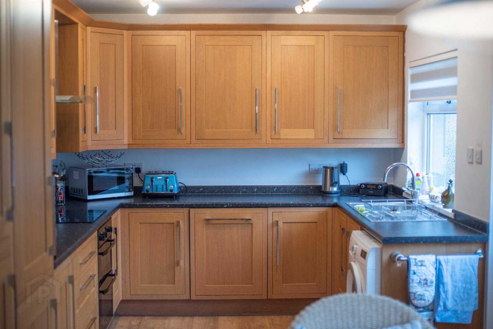 There is a spacious kitchen/ dining area. The kitchen is fully equipped with washing machine, tumble drier and dish washer.