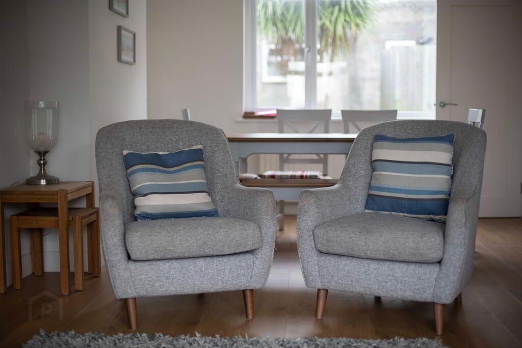 The property has a lovely downstairs with a living room/dining area and kitchen. Upstairs there are 2 double bedrooms and 1 single room with a trundle bed beneath that you can pull out . The single room would be suitable for children as it has a single trundle mattress. The property can accomodate up to 6.