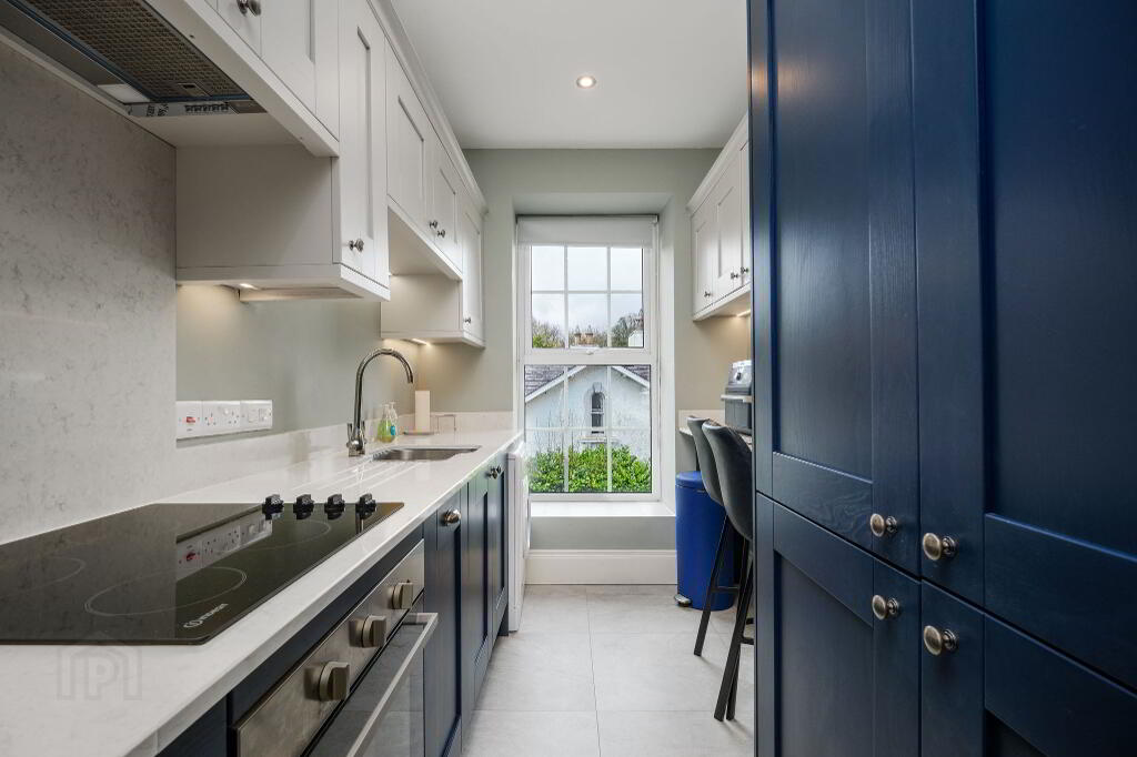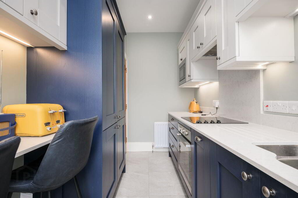 The apartment features a spacious living area, and separate, modern kitchen space, there is also a dedicated dining space. The fully equipped modern kitchen provides everything you need for a self-catered stay, while the comfortable living area is ideal for relaxing after a busy day. The dining space offers plenty of room for enjoying meals together.